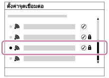 (ไร้สาย) → [ตั้งค่าจุดเชื่อมต่อ] - เลือกจุดเชื่อมต่อที่ต้องการบันทึก