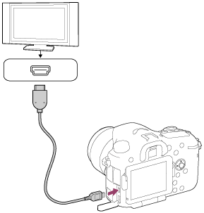 - เสียบสาย HDMI (แยกจำหน่าย) เข้ากับขั้วต่อไมโคร HDMI ของผลิตภัณฑ์นี้และช่องต่อ HDMI ของทีวี
