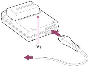 - เมื่อใช้กล้องเป็นครั้งแรกหรือเมื่อท่านใช้ก้อนแบตเตอรี่ที่ไม่ได้ใช้งานมาเป็นเวลานาน ไฟ CHARGE อาจกะพริบอย่างรวดเร็วเมื่อชาร์จแบตเตอรี่เป็นครั้งแรก ในกรณีเช่นนี้ ให้ถอดแบตเตอรี่ออกจากเครื่องชาร์จแล้วใส่กลับเข้าไปอีกครั้งเพื่อชาร์จใหม่