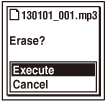 The “Erasing...” animation appears in the display window and the selected file will be erased.