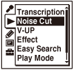 - If you play a file recorded with the Scene Select function set to “Auto Voice Rec,” “Meeting,” “Lecture,” “Voice Notes,” or “Interview” while the noise cut function is set to “Auto,” the noise cut function will switch to “Medium” automatically.