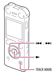 You can add a track mark at a point at which you would like to divide a file later or locate during playback. You can add a maximum of 98 track marks to each file.