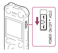 Slide and hold the POWER ON/OFF•HOLD switch in the direction of “POWER ON/OFF” until the window display appears.