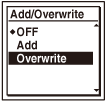 “Add/Overwrite” is set to “OFF” when you purchase the IC recorder.