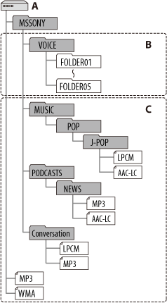 *4 If you transfer music files separately, they are classified as being in “No Folder.”