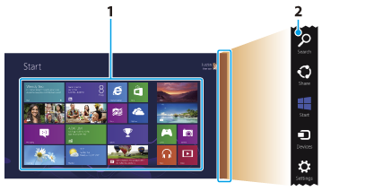 Search for apps and files, share content, play content on other devices or print, and set up your VAIO computer.