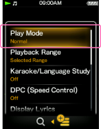 For example, the operations for setting [Play Mode] option to [Shuffle] are shown below.