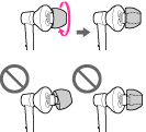 Twist and push the inside parts of the earbud into the headphone until the projecting part of the headphone is fully covered.