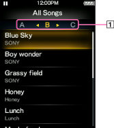 The following are examples of music list screens. When the index appears, you can move the cursor by pressing the