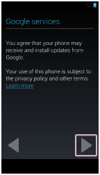 - The settings for Google accounts can be set as necessary later. After you have set up a Google account, you can use the services provided by Google. For details, see “Setting up a Google account.”