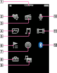 The following list shows the items of the Home menu.