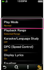 For example, the operations for setting [Play Mode] option to [Shuffle] are shown below.