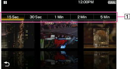 Select the desired interval from [15 Sec], [30 Sec], [1 Min], [2 Min], [5 Min] or [Chapter]. ([Chapter] appears when a video has chapters.)