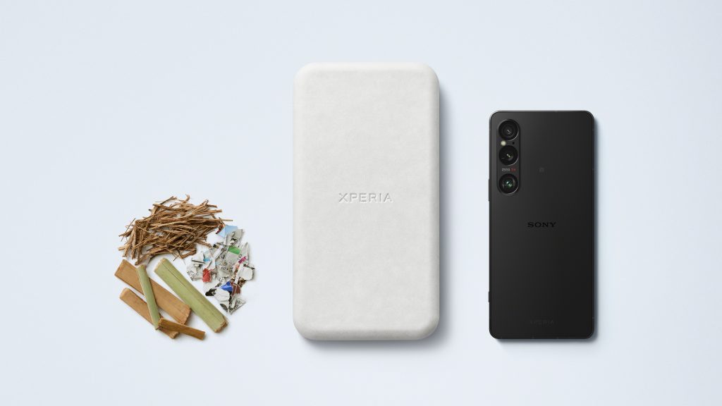 The product box and main tray of Xperia 1 VI are made from Sony’s Original Blended Material, comprising bamboo, sugar cane, and recycled paper, making it possible to achieve individual packaging that is completely plastic-free[x]. In addition to Sony’s ongoing efforts to reduce plastic, plastic tape used to seal shipping cartons has been replaced by paper to make packaging more environmentally friendly.