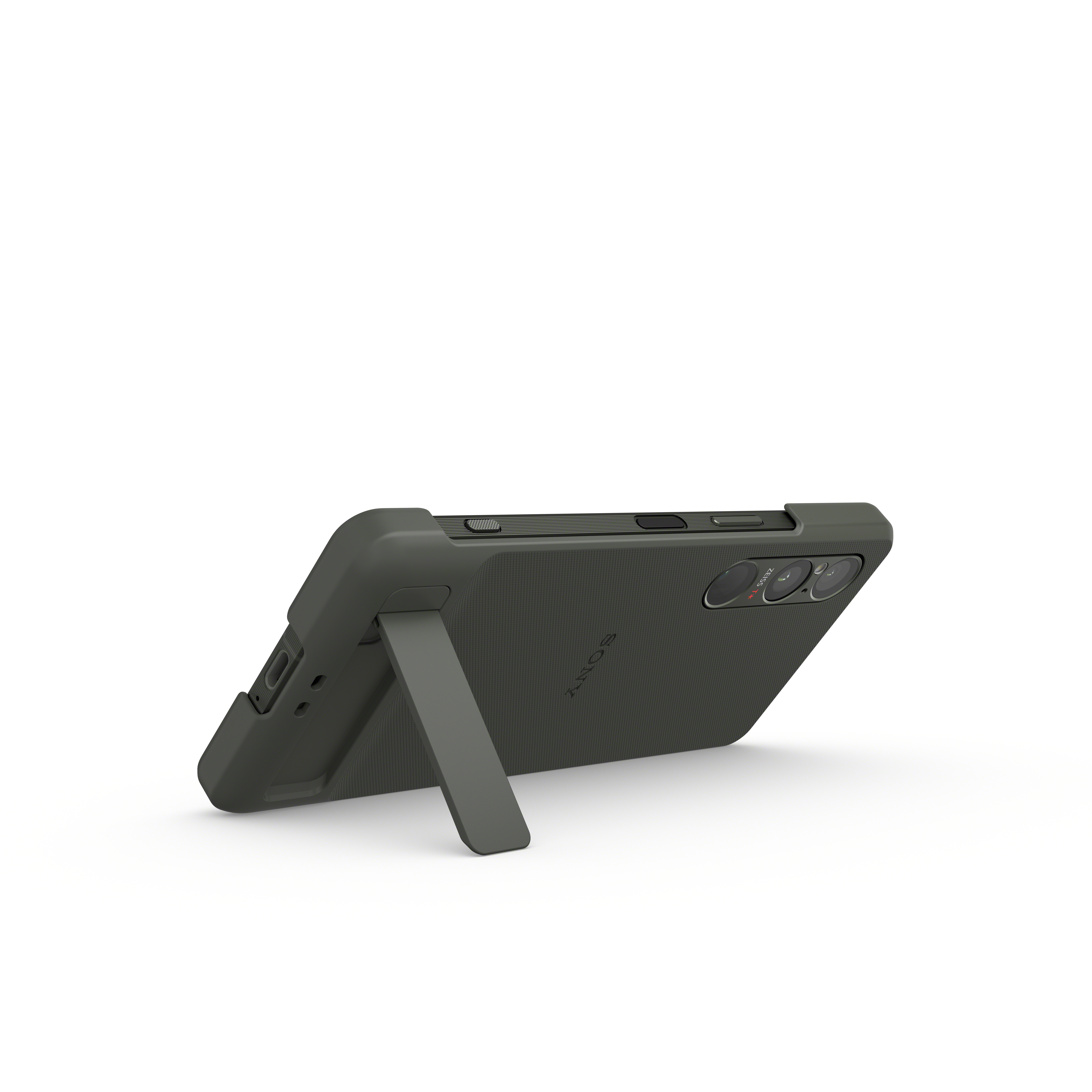 Xperia 1 VI’s dedicated cover features a bottom grip for effortless handling and steady shooting. With the newly bundled ring strap that can be attached to the cover, stability is further enhanced. Moreover, the stand supports both horizontal and vertical orientations for added convenience. The back of the cover mirrors the functional tactile design found on the back of the Xperia 1 VI, ensuring that even with the cover attached, the device’s original design remains uncompromised. There are 2 colours[xii] to match the main body. SORPLAS is used as part of the raw material for this cover [xiii].