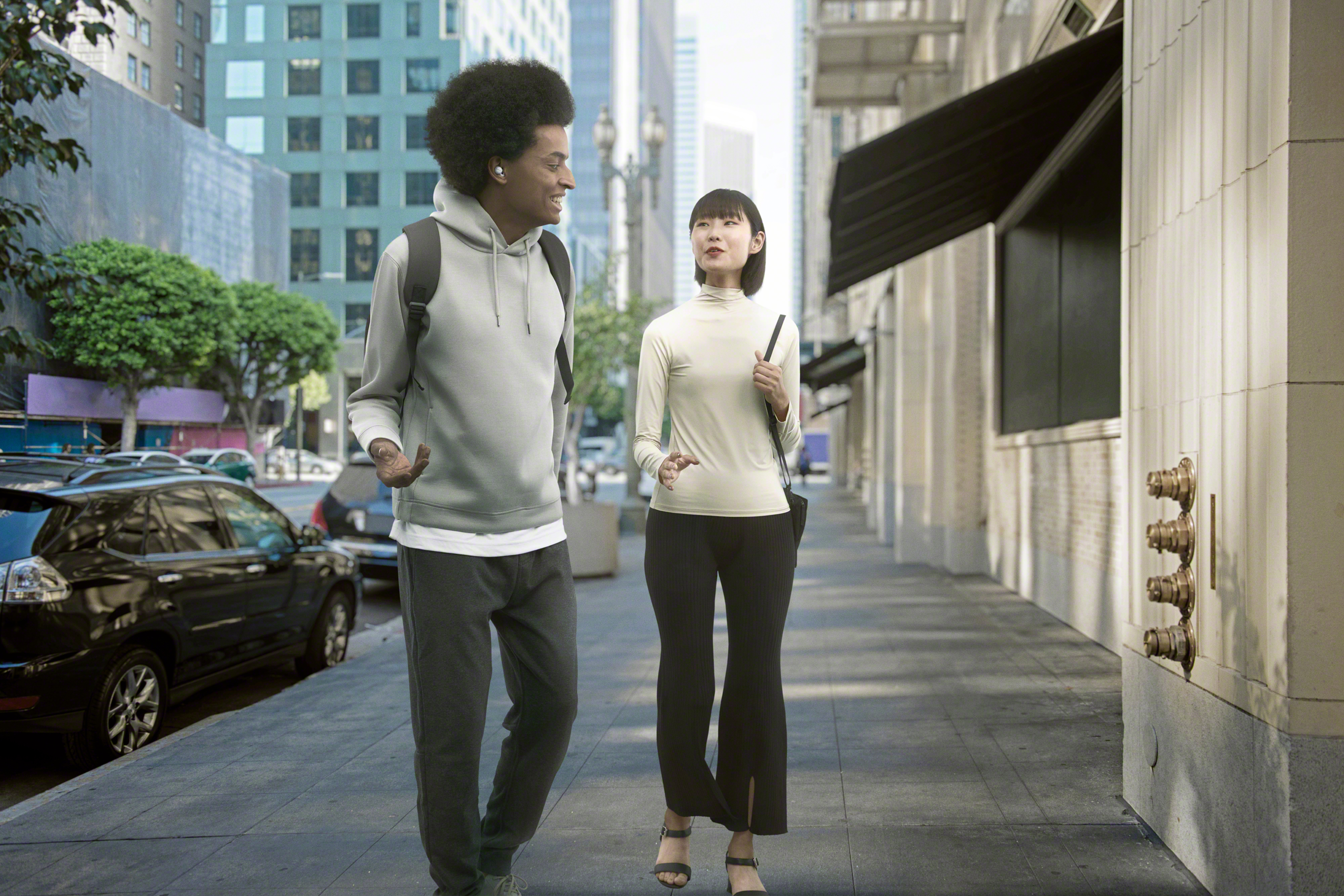 LinkBuds are there to help no matter where you are and even when your hands are full. With Speak-to-Chat[iv] you can automatically pause your music as soon as you speak to someone. Once your conversation is over, your music starts playing automatically, so there’s no need to touch any controls. LinkBuds also come with hands-free help so you can get information, connect with friends, set reminders, and more by activating your preferred voice assistant[v]. Just say “OK Google” or “Alexa”.
